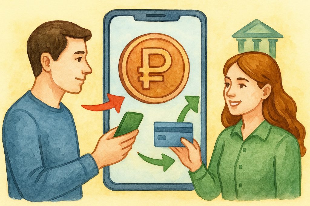 Допустим, вы хотите перевести другу 500 рублей. Если вы используете цифровые рубли, перевод происходит мгновенно: средства напрямую переходят из вашего кошелька на платформе ЦБ в кошелёк вашего друга, без участия каких-либо посредников. Это похоже на то, как если бы вы просто передали ему купюру из рук в руки, но в цифровом пространстве.